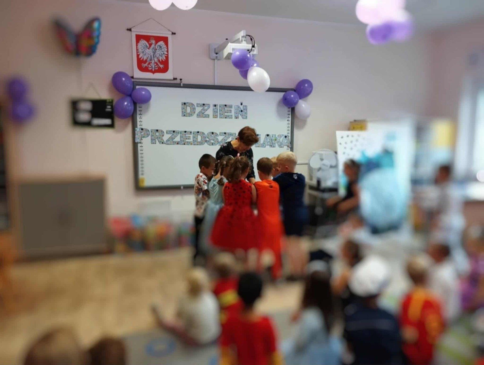 19 września w naszym przedszkolu obchodziliśmy radośnie Dzień Przedszkolaka. Był to wyjątkowy czas pełen uśmiechu, zabawy i niespodzianek. Na dzieci czekało mnóstwo atrakcji, które wprowadziły wszystkich w radosny, świąteczny nastrój.  Niektóre przedszkolaki zamieniły się w bajkowe postacie, a inne przyszły w swoich ulubionych piżamach, co dodało uroku i humoru całej zabawie.Tańcom i śmiechom nie było końca :-)