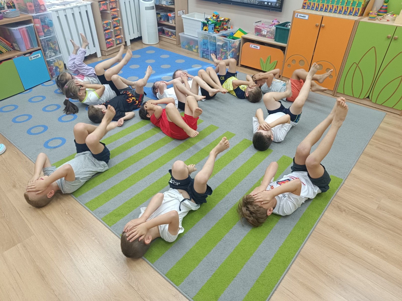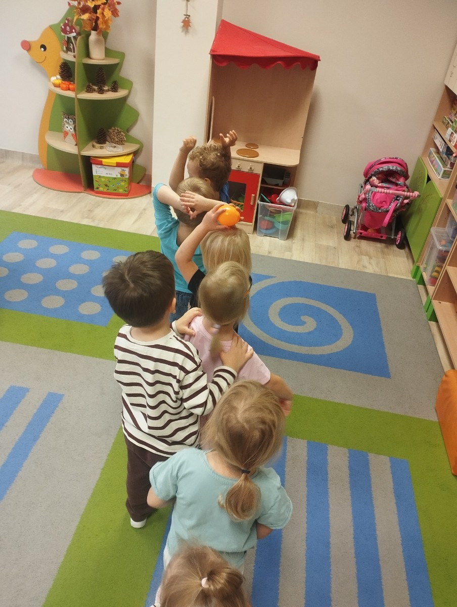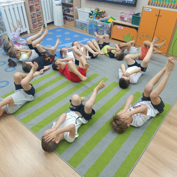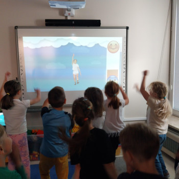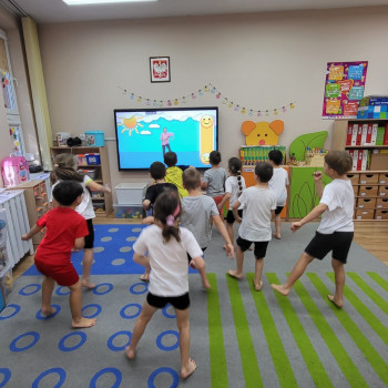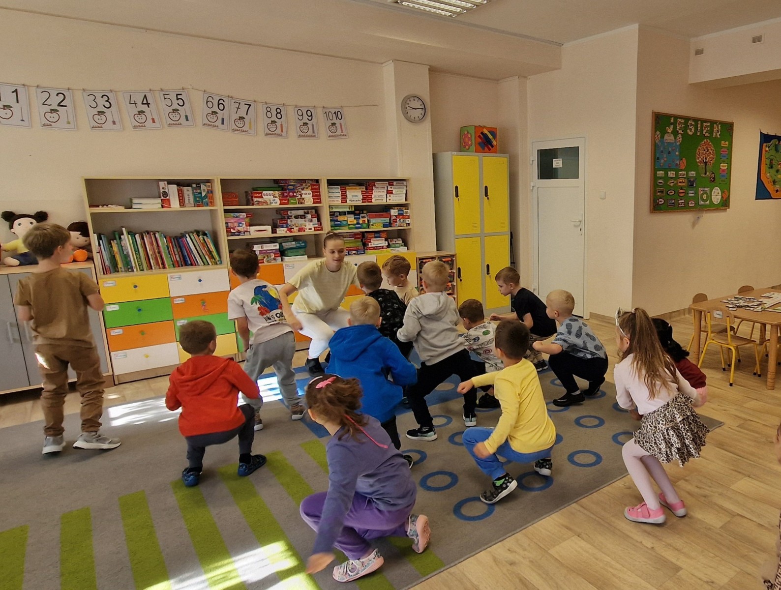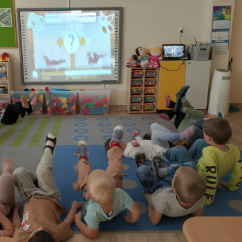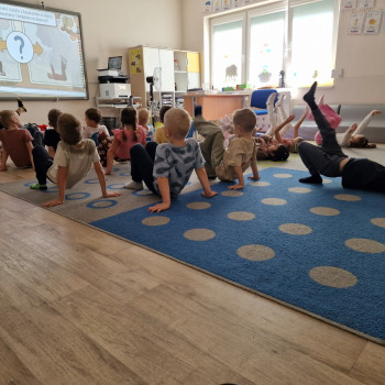 Każda zabawa była okazją nie tylko do ćwiczeń, ale i do nauki- poprzez ruch utrwaliliśmy znajomość kolorów, rozwijaliśmy orientacje przestrzenną, trenowaliśmy dodawanie i ćwiczyliśmy umiejętności naśladowcze. Podczas wspólnych ćwiczeń uczyliśmy się obserwować emocje innych, rozpoznawać je i nazywać oraz dowiedzieliśmy się jak można wpływać na emocje innych i w prosty sposób poprawiać nastrój.