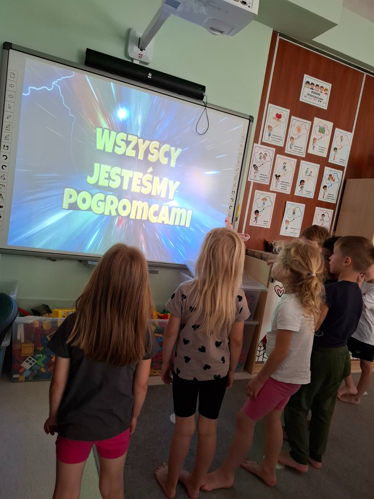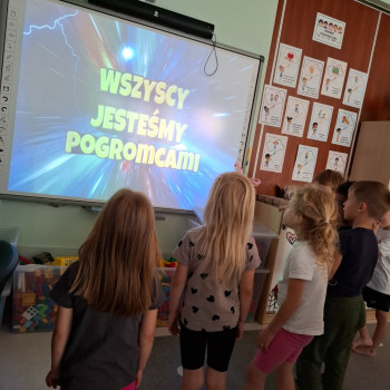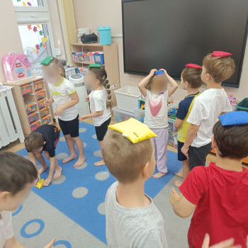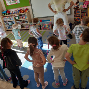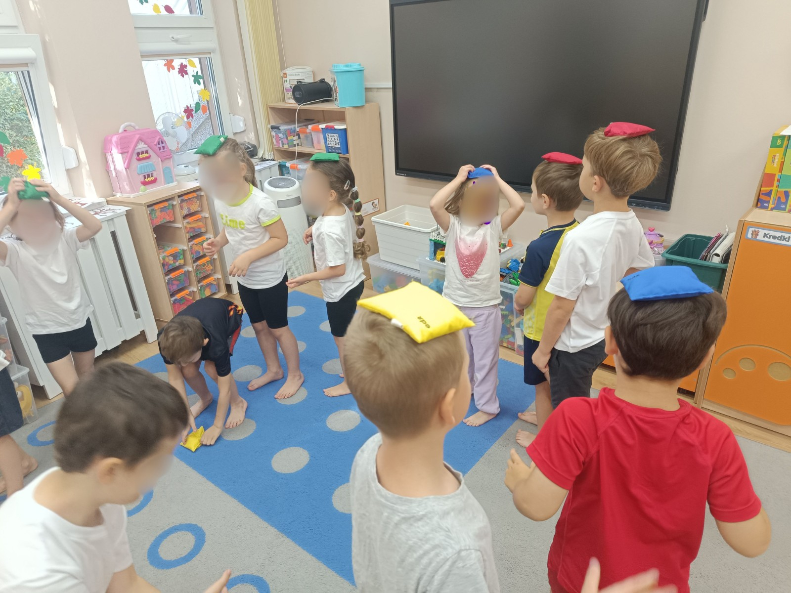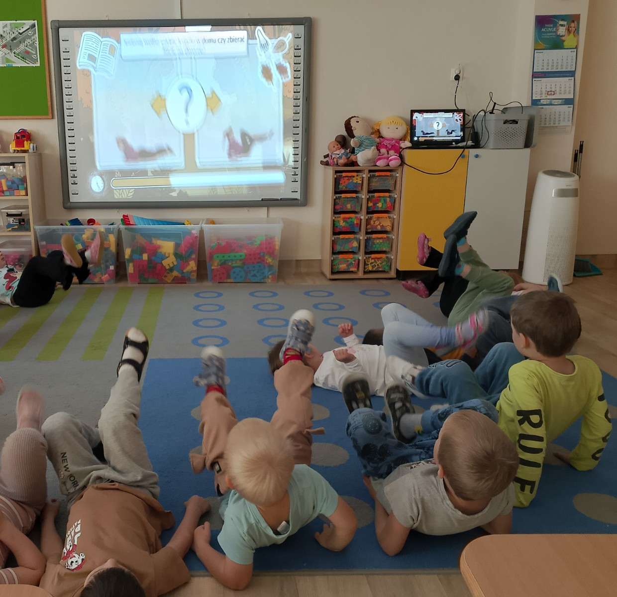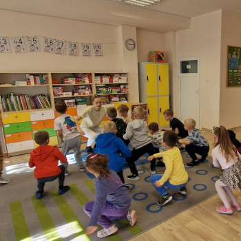 Każda zabawa była okazją nie tylko do ćwiczeń, ale i do nauki- poprzez ruch utrwaliliśmy znajomość kolorów, rozwijaliśmy orientacje przestrzenną, trenowaliśmy dodawanie i ćwiczyliśmy umiejętności naśladowcze. Podczas wspólnych ćwiczeń uczyliśmy się obserwować emocje innych, rozpoznawać je i nazywać oraz dowiedzieliśmy się jak można wpływać na emocje innych i w prosty sposób poprawiać nastrój.