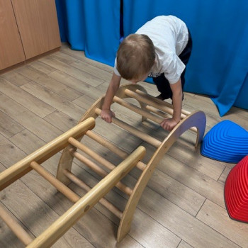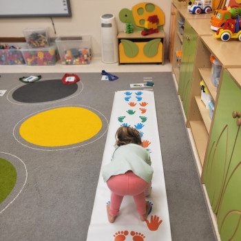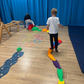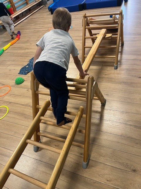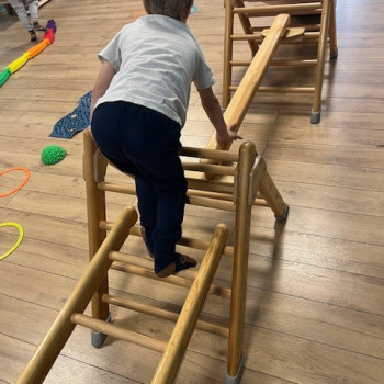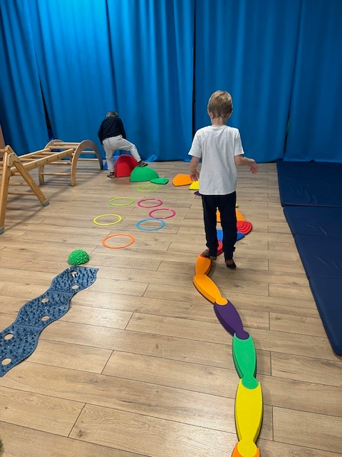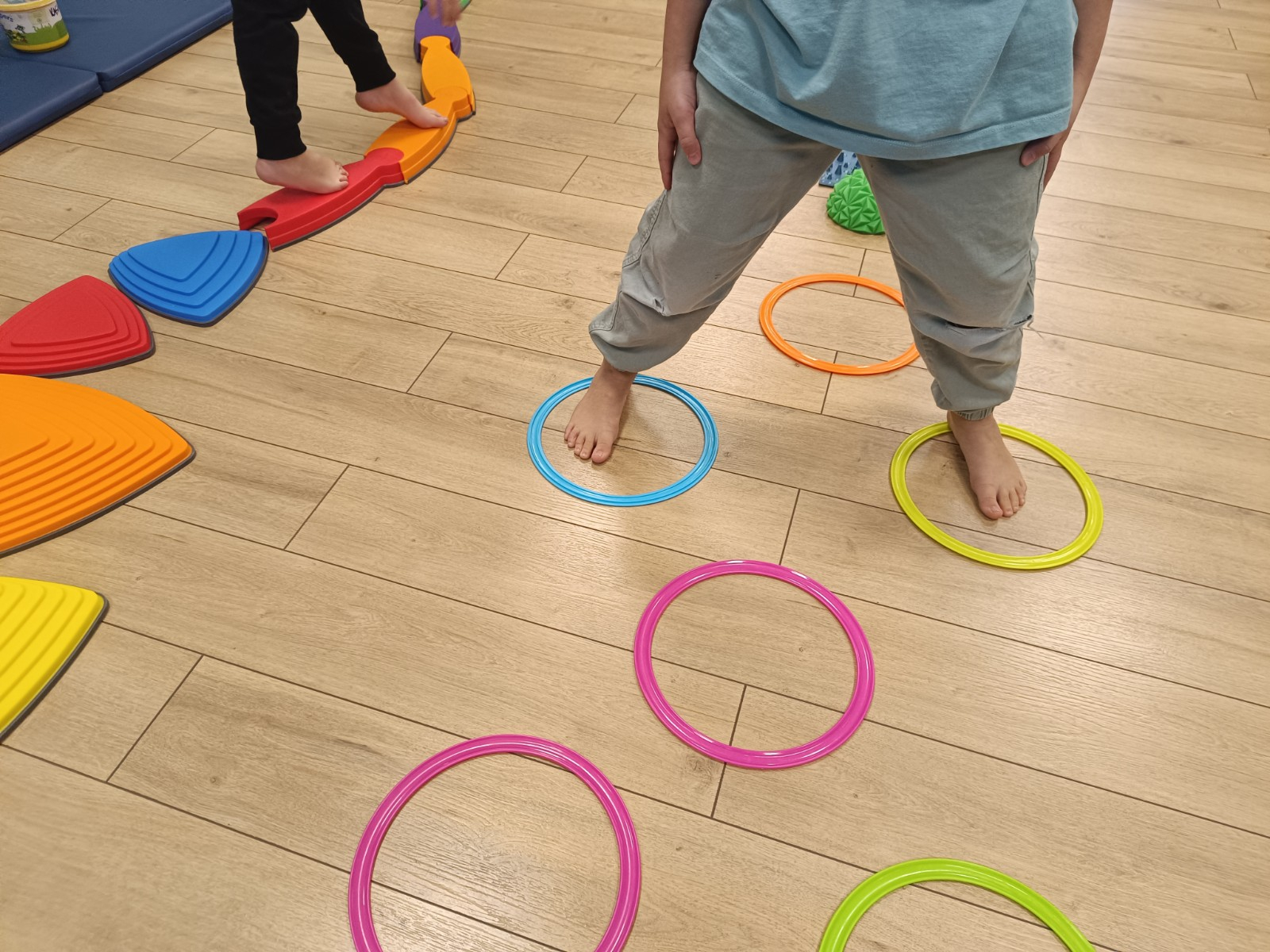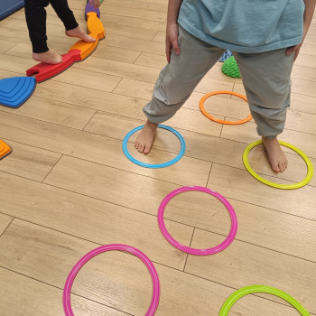 - chodziły po ścieżce sensorycznej, rzucały do celu, huśtały się na platformie i przechodziły po drabinkach;