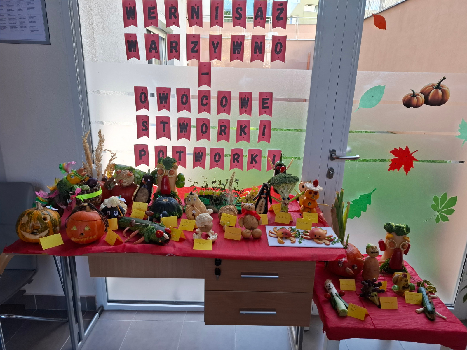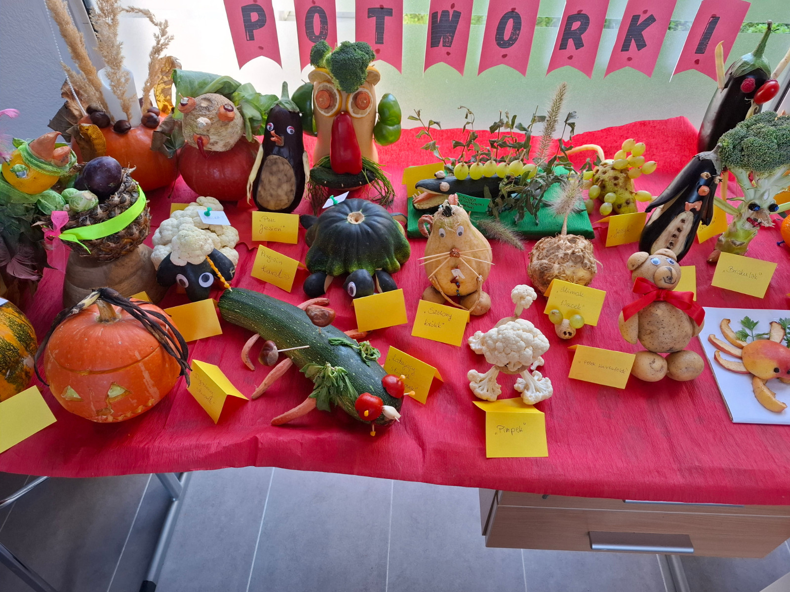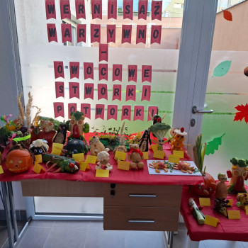 W naszym przedszkolu zrobiło się kolorowo i wyjątkowo twórczo — powitaliśmy jesień w kreatywny sposób! Chętne dzieci ze wszystkich grup, z pomocą rodziców, przygotowały niezwykłe prace plastyczne z warzyw i owoców: stworki, potworki i inne fantastyczne postacie, które zaprezentowaliśmy na naszym małym wernisażu. Zapraszamy do obejrzenia zdjęć.