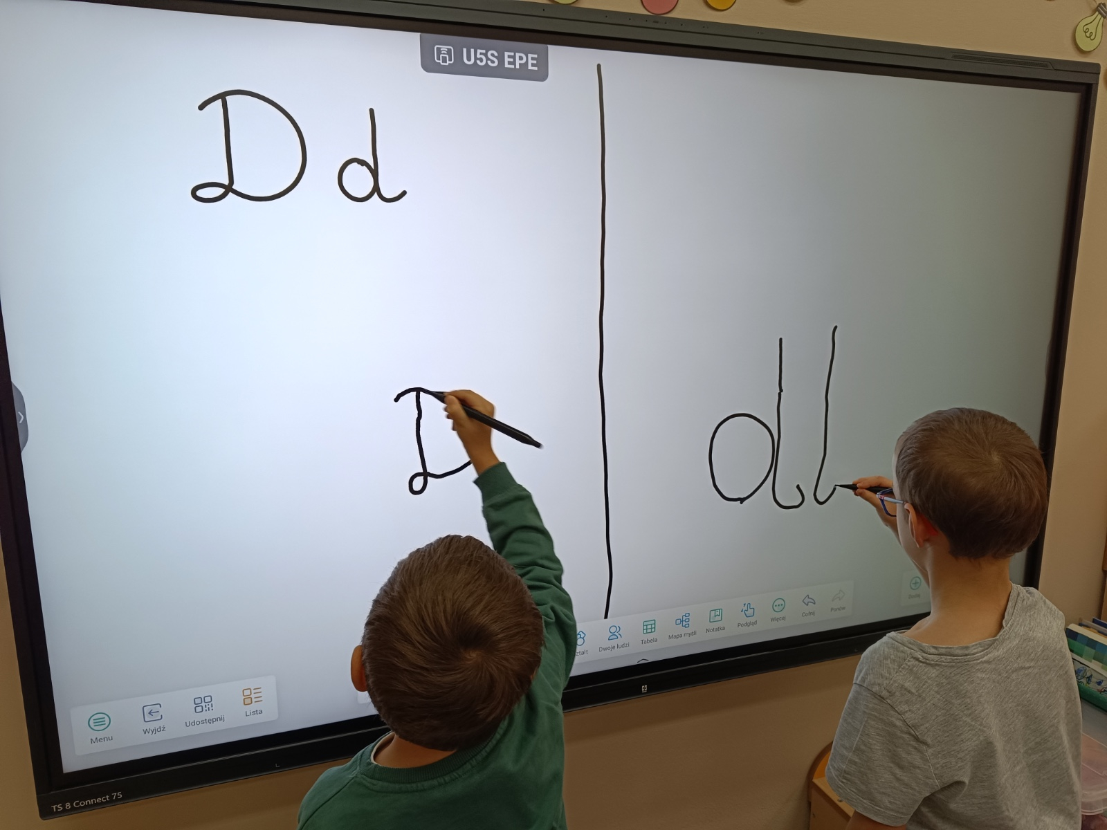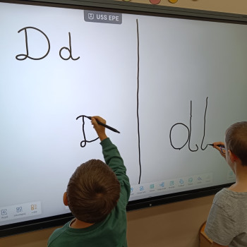 - poznają literę d, D: małą i wielką, drukowaną i pisaną