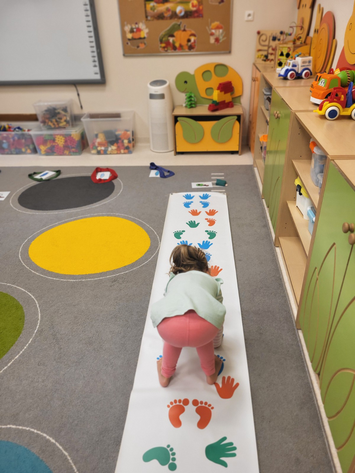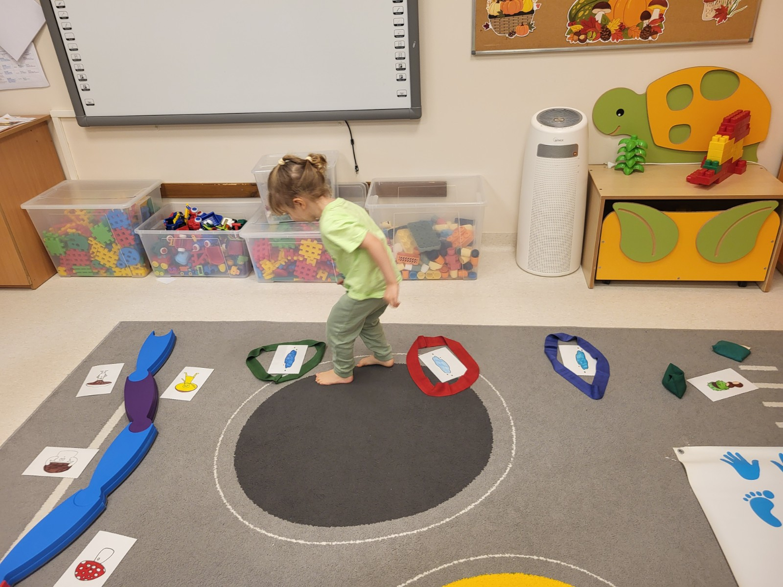 - chodziły po ścieżce sensorycznej, rzucały do celu, huśtały się na platformie i przechodziły po drabinkach;