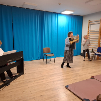 Podczas spotkania mali słuchacze przenieśli się w świat góralskich opowieści i muzycznych historii inspirowanych tradycją Podhala. Dźwięki waltorni zachwyciły dzieci swoim ciepłym, głębokim i tajemniczym brzmieniem. Przedszkolaki dowiedziały się, jak zbudowany jest ten instrument, w jaki sposób wydobywa się z niego dźwięk oraz jaką rolę pełni