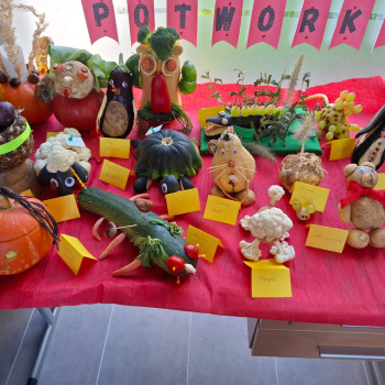 W naszym przedszkolu zrobiło się kolorowo i wyjątkowo twórczo — powitaliśmy jesień w kreatywny sposób! Chętne dzieci ze wszystkich grup, z pomocą rodziców, przygotowały niezwykłe prace plastyczne z warzyw i owoców: stworki, potworki i inne fantastyczne postacie, które zaprezentowaliśmy na naszym małym wernisażu. Zapraszamy do obejrzenia zdjęć.