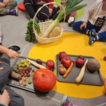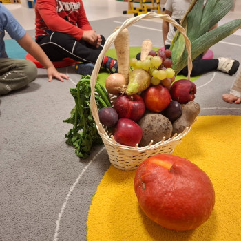 • będą wielozmysłowo poznawać owoce i warzywa jesienne;