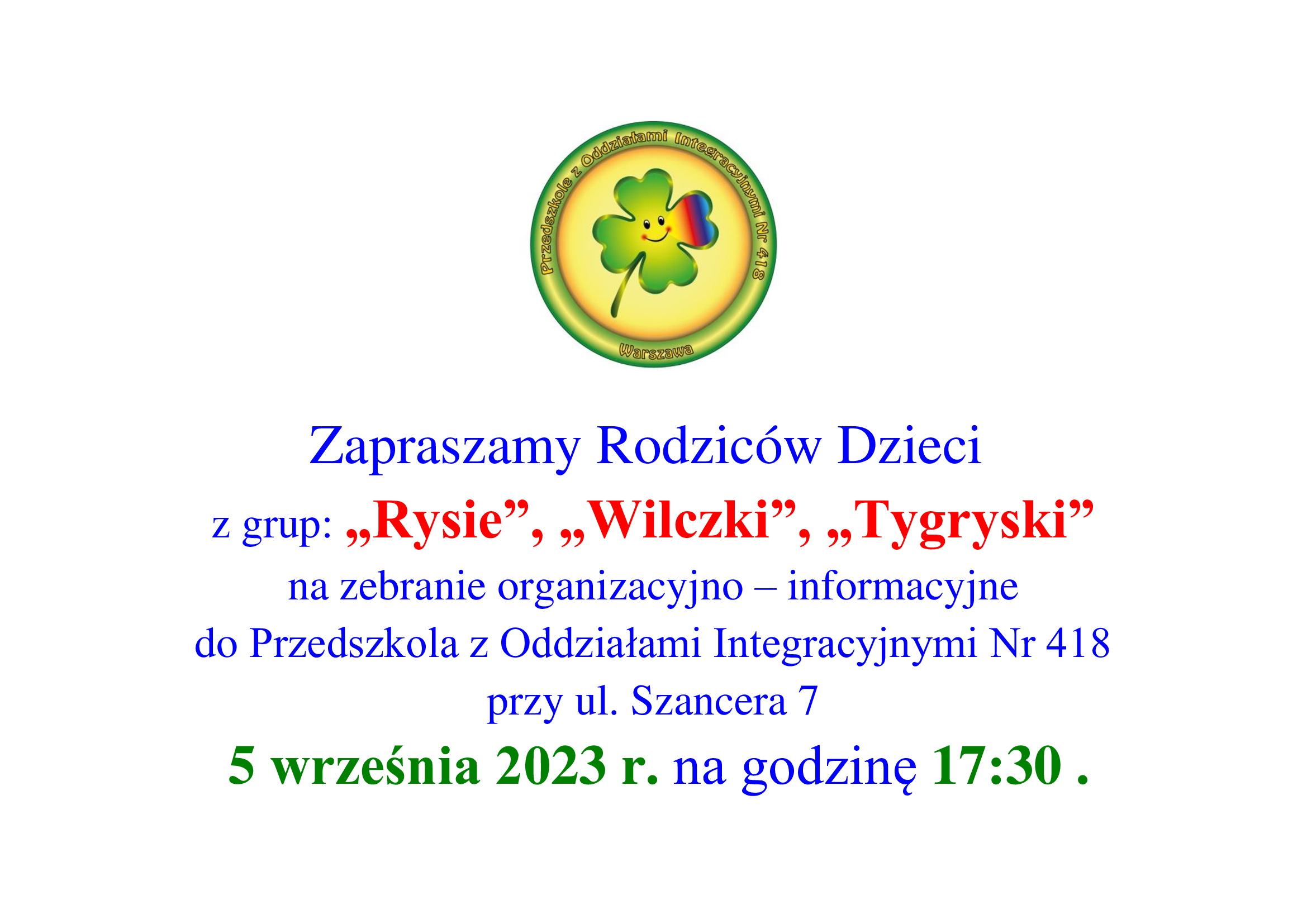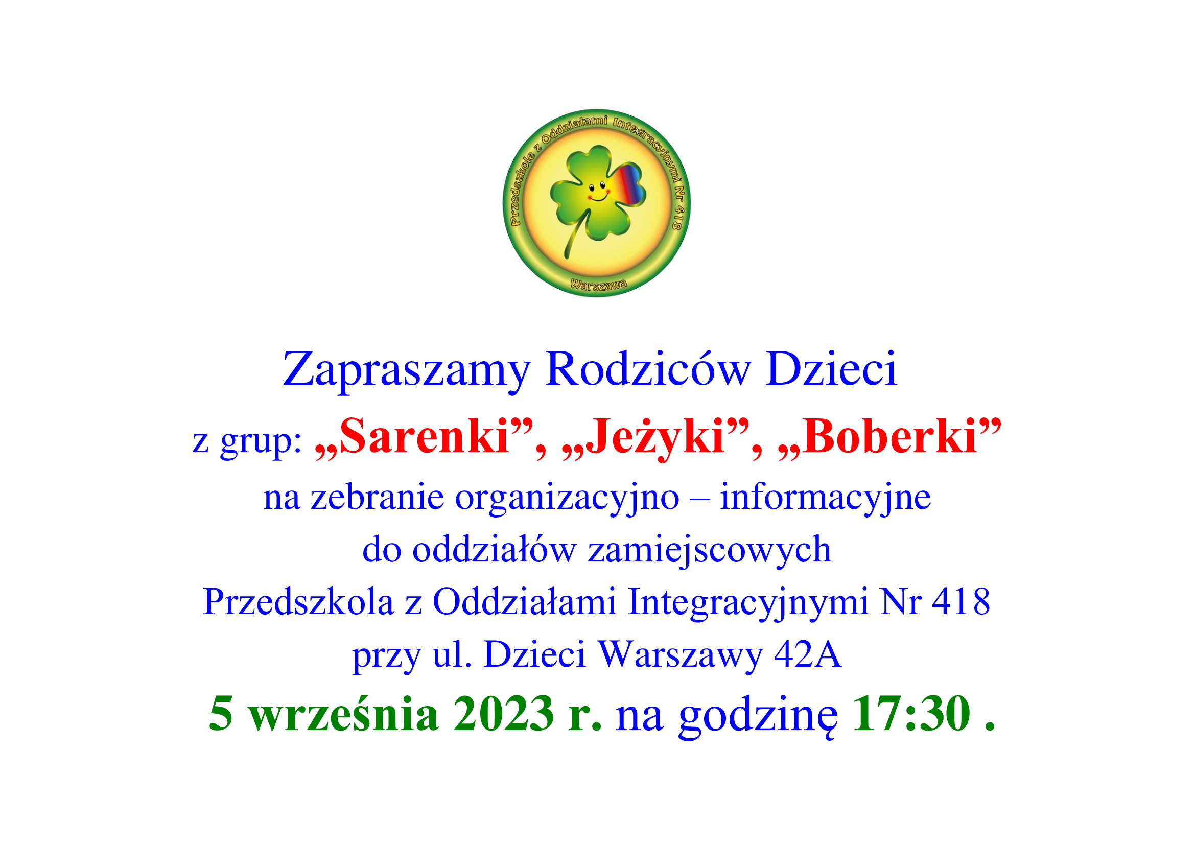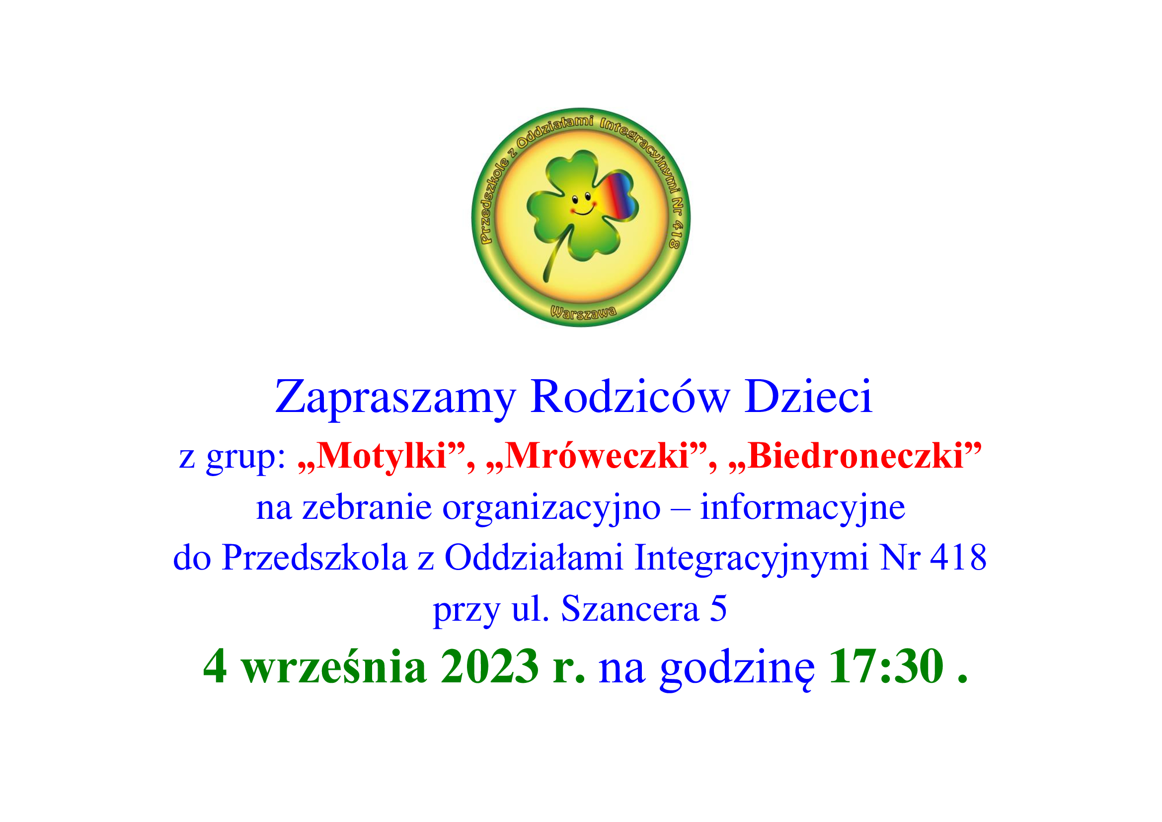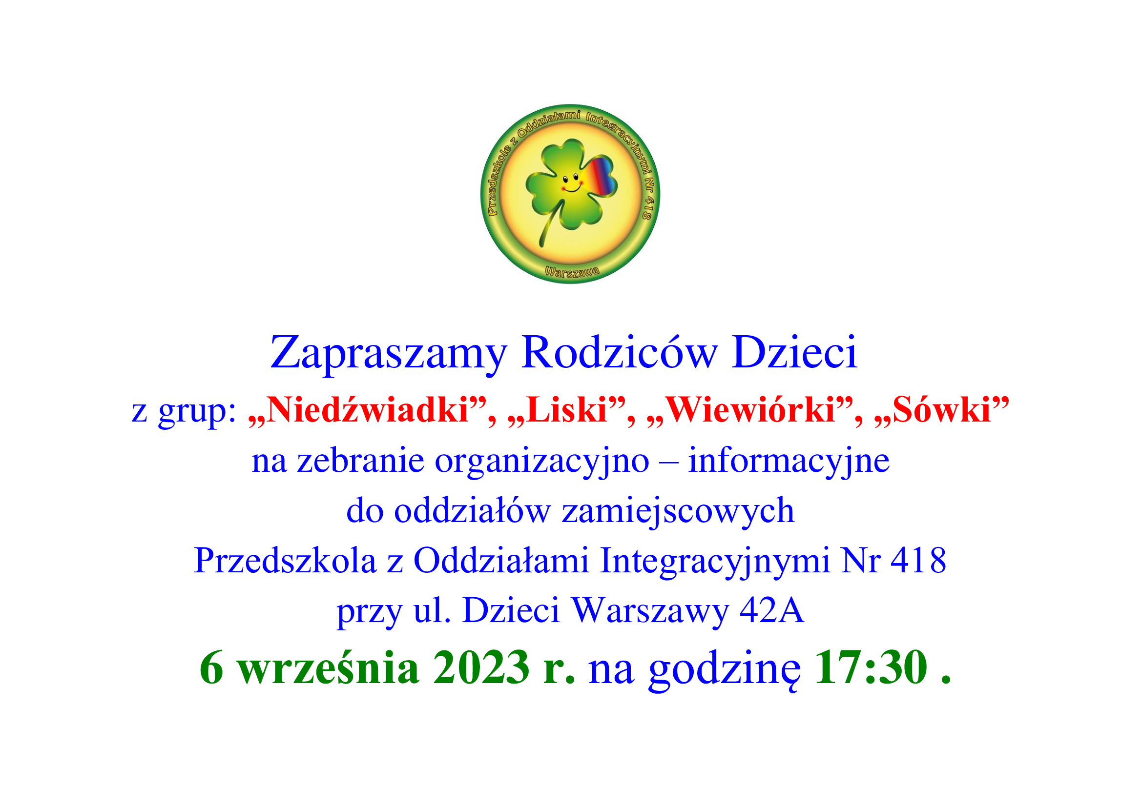 Serdecznie zapraszamy na pierwsze zebrania organizacyjne w naszym przedszkolu.